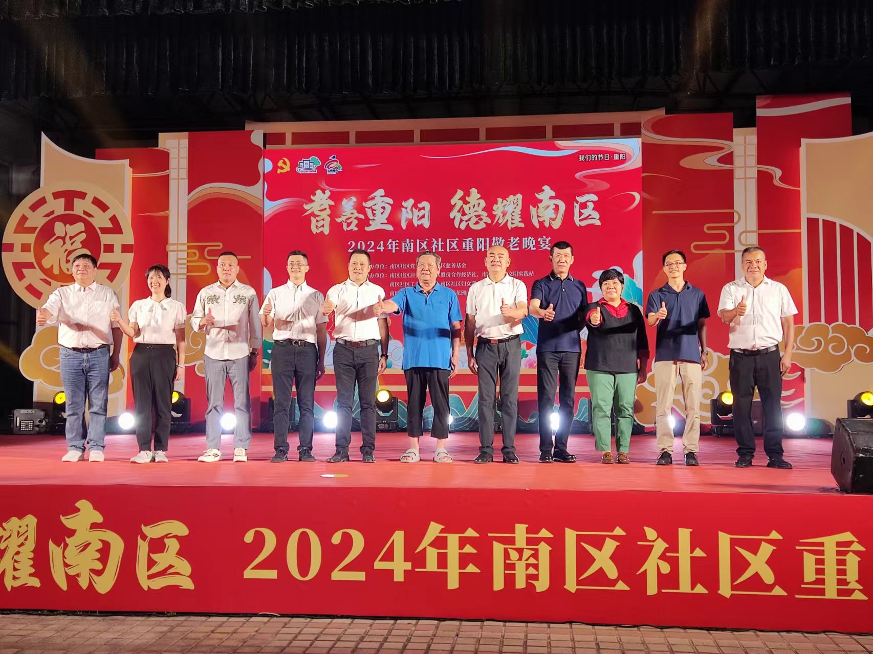 為慶祝重陽(yáng)佳節(jié)的到來(lái),體現(xiàn)南區(qū)社區(qū)尊老敬老的優(yōu)良傳統(tǒng),進(jìn)一步南區(qū)弘揚(yáng)尊老敬老、愛(ài)老助老的優(yōu)良傳統(tǒng),南區(qū)社區(qū)于10月11日在南區(qū)廣場(chǎng)舉辦“耆善重陽(yáng),德耀南區(qū)”2024年敬老晚宴,宴請(qǐng)了社區(qū)內(nèi)全體老人,并表彰了譽(yù)延豐、成田、煜輝等熱心公益的單位和個(gè)人。