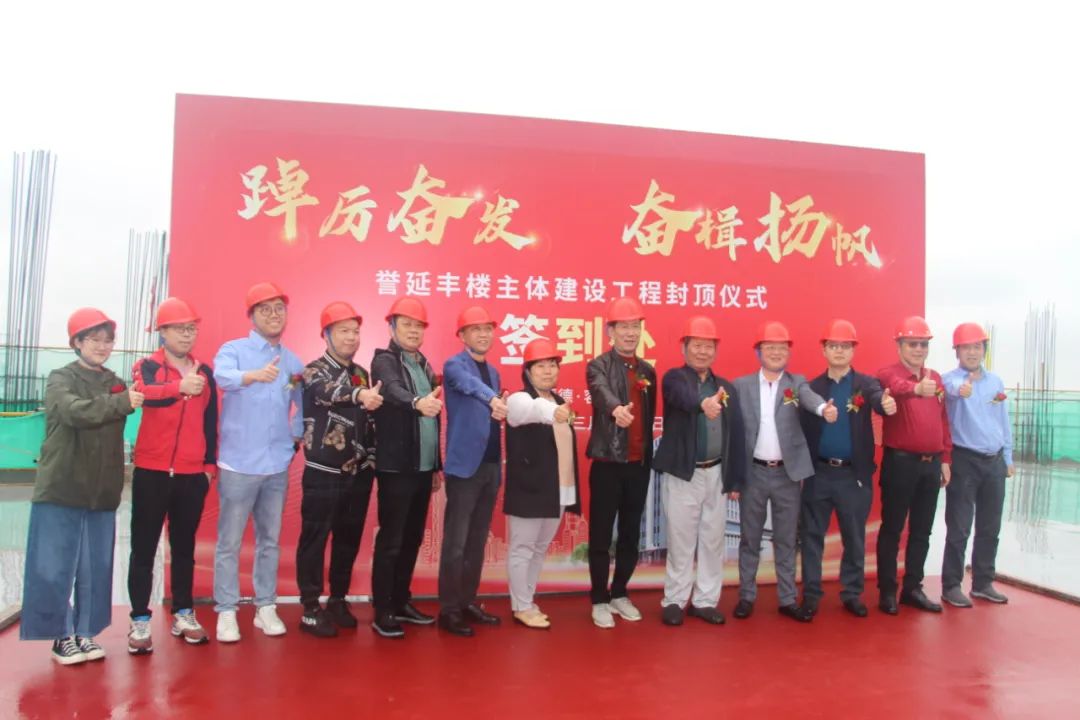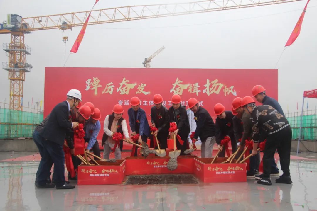 At the grand capping ceremony, leaders and guests from Yufeng Company, Agricultural Bank of China Shunde Branch, Shunde Rural Commercial Bank, South District Community Party Committee, Board of Directors of the Joint Stock Corporation, Financial Supervision Group of the Joint Stock Corporation, Guangdong Yinghai Construction Engineering Co., Ltd., Shunde Architectural Design Institute, Hunan Chemical Engineering Geological Engineering Survey Institute Foshan Branch, Guangdong Yaoxin Construction Supervision Co., Ltd. and other units jointly witnessed this historic moment, And send sincere wishes to Yufeng Company.